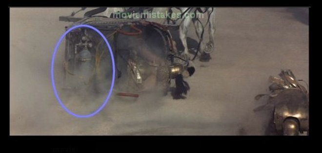 - La galardonada cinta “Gladiador” protagonizada por Rusell Crowe, también aporta con algunos errores como cuando el protector de su hombro cambia repentinamente de lado. También está el tanque que se observa en un carro de guerra romano.