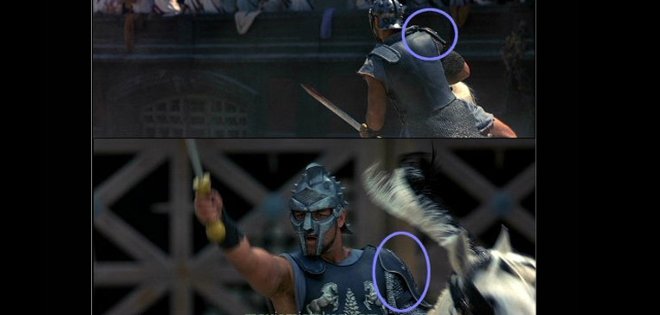 4. (Gladiador) El protector de hombros de Rusell Crowe que cambia repentinamente de lado. -