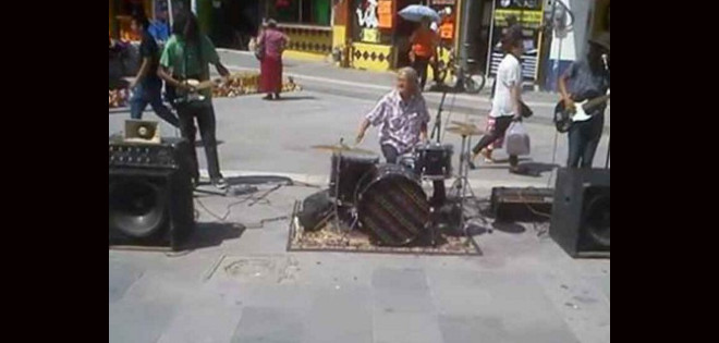 Una abuelita tocando la batería en el Centro Histórico de ciudad Juárez es la sensación en redes.