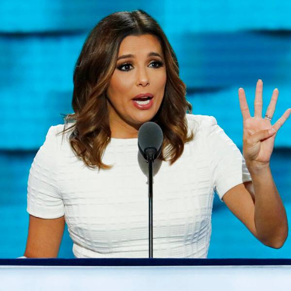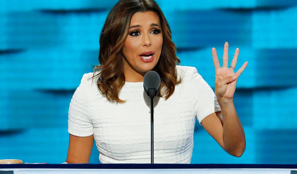 La actriz Eva Longoria interviene en la primera jornada de la Convención Nacional del Partido Demócrata en Filadelfia.Foto: AP