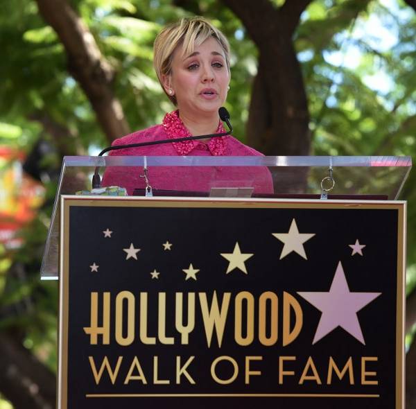 La actriz estadounidense Kaley Cuoco, que interpreta a la entrañable Penny en la comedia "The Big Bang Theory", recibió este miércoles su estrella en el Paseo de la Fama de Hollywood, en una divertida ceremonia en la que estuvo arropada por sus compañeros de reparto.