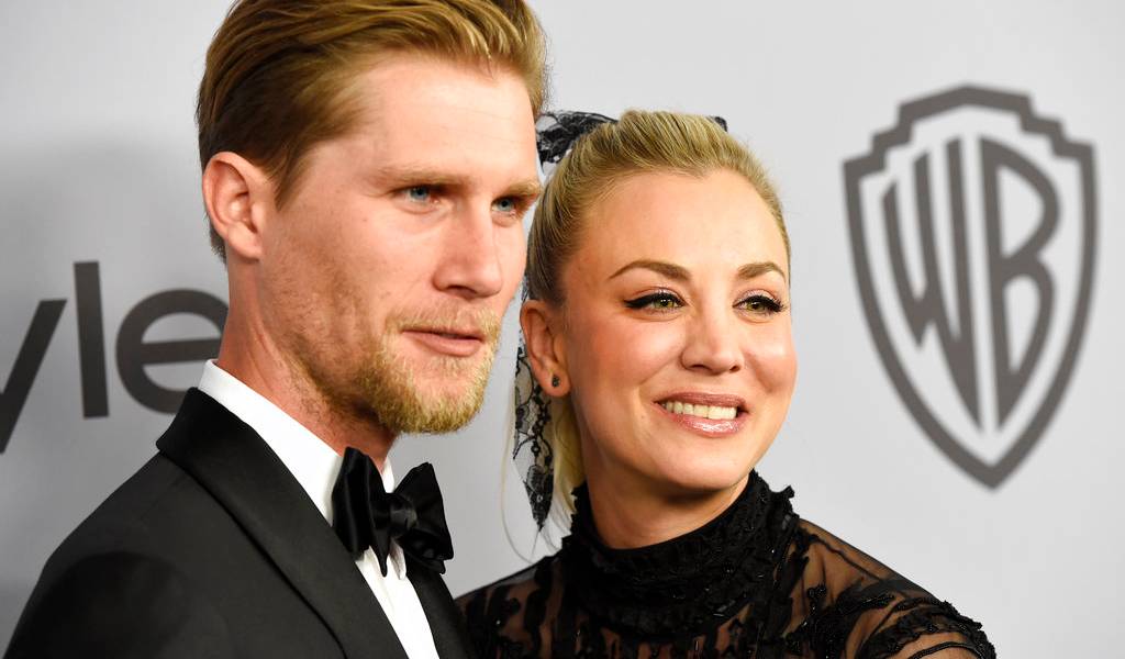 Karl Cook y Kaley Cuoco, en una fiesta de los Globos de Oro. Foto: AP.