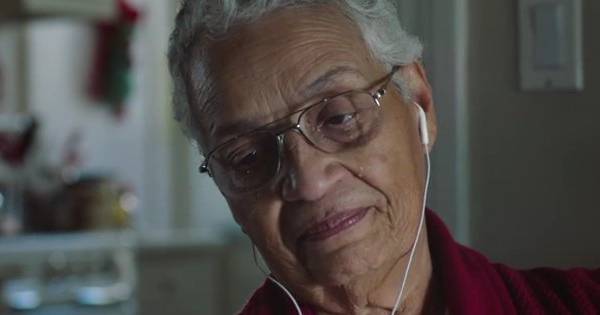 Con la ayuda de los productos de Apple, la abuelita recibe el mejor regalo de Navidad al escucha la canción en un iPad 3 mini mientras se sorprende y a la vez llora de felicidad al reconocer la voz de su nieta.