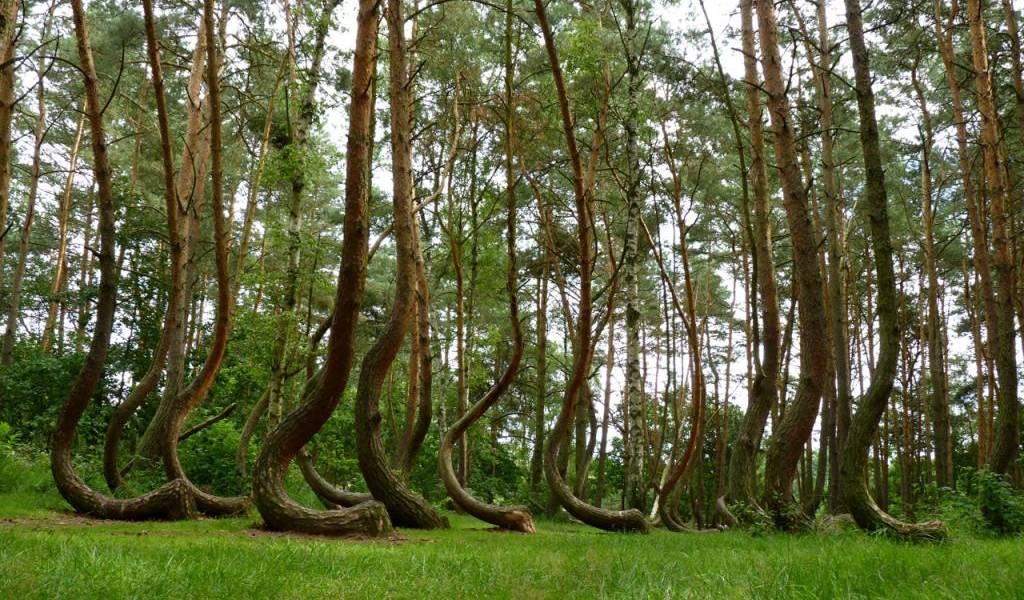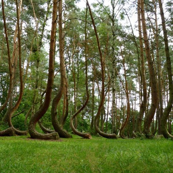 En Gryfino, Polonia existe un curioso bosque con aproximadamente 400 árboles con una curvatura de 90 grados.