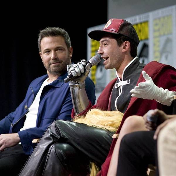 Ben Affleck (i.) y Ezra Miller (d.) ya actuaron juntos en la Liga de la Justicia. Foto: EFE/David Maung/Archivo