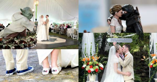 El sitio web de Huffington Post publicó las raras imágenes de estos novios que fueron un paso más allá al combinar su amor por los videojuegos, las películas, los programas de televisión y los superhéroes para crear esta ceremonia.