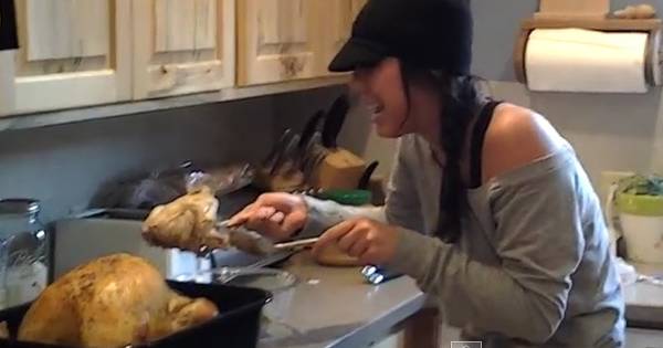 Una joven se encuentra rellenando el típico pavo que preparan el Día de Acción de Gracias en Estado Unidos cuando descubre que hay algo en su interior. Mientras unos amigos graban sus dotes en la cocina, su madre se acerca y le pregunta qué es. “Oh Dios mío, es un bebé”, grita la protagonista.