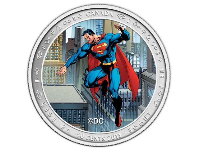 Las monedas de colección, diseñadas por el canadiense Joe Shuster y el estadounidense Jerry Siegel, -una de cuproníquel (cobre y níquel), cinco de plata y una de oro- saldrán a fines de 2013 y tendrán un valor nominal de 50 centavos para la primera moneda; de 10, 15 y 20 dólares para las de plata; y 75 dólares para la de oro de 14 quilates.