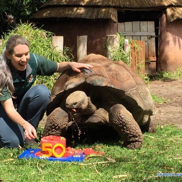 "Estas tortugas no tienen un buen sentido del olfato, por lo que usan sus ojos para encontrar comida. Cualquier cosa rojos realmente llama la atención de Cerro, que ama los alimentos de colores brillantes, ¿qué mejor manera de celebrar su cumpleaños 50 que con una torta de la sandía?" dijo Emily Trainer, encargado del lugar.