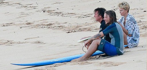 El pasado martes 31, Penn se dedicó a surfear las aguas del Pacífico mientras Theron tomaba el sol en un bikini de rayas multicolores. Posteriormente la pareja se encontró para reunirse con un amigo en la playa.