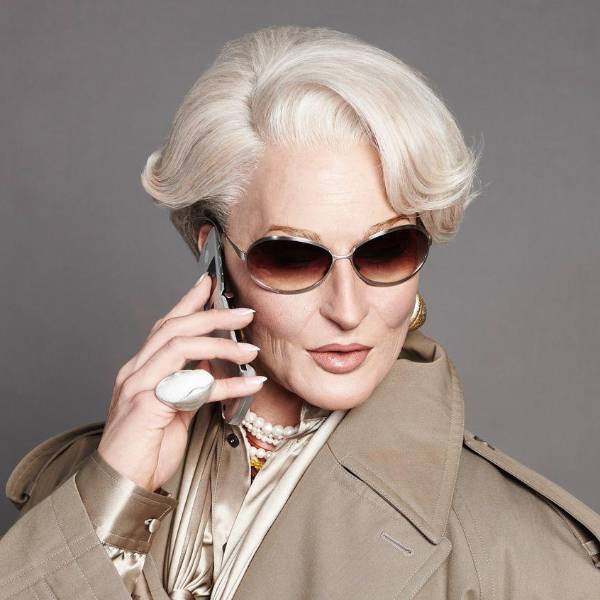 Meryl Streep interpretando Miranda Priestley en El Diablo Viste a la Moda ( ) -