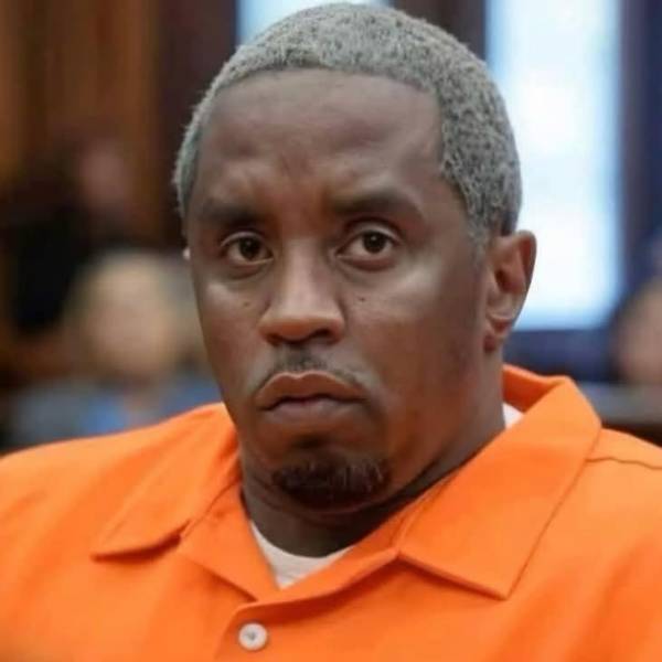 Imagen de P. Diddy en medio de un juicio vestido con uniforme naranja de PPL.( )