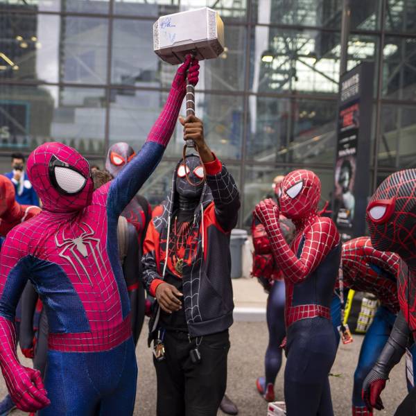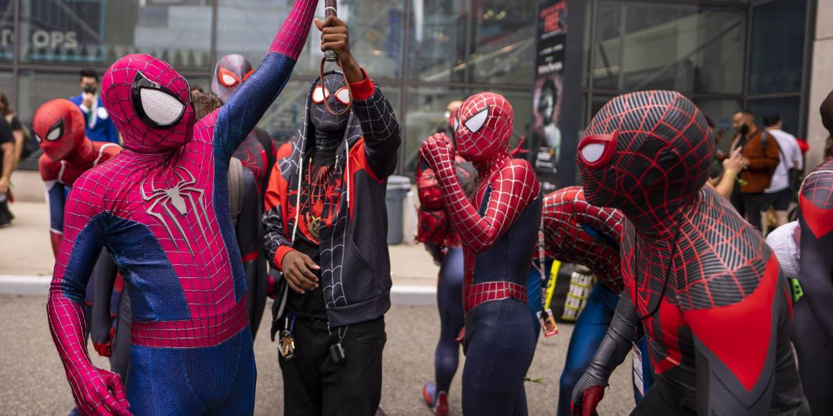 Unas personas disfrazadas de Spider-Man en la feria Comic Con en la ciudad de Nueva York el 9 de octubre de 2021.( )