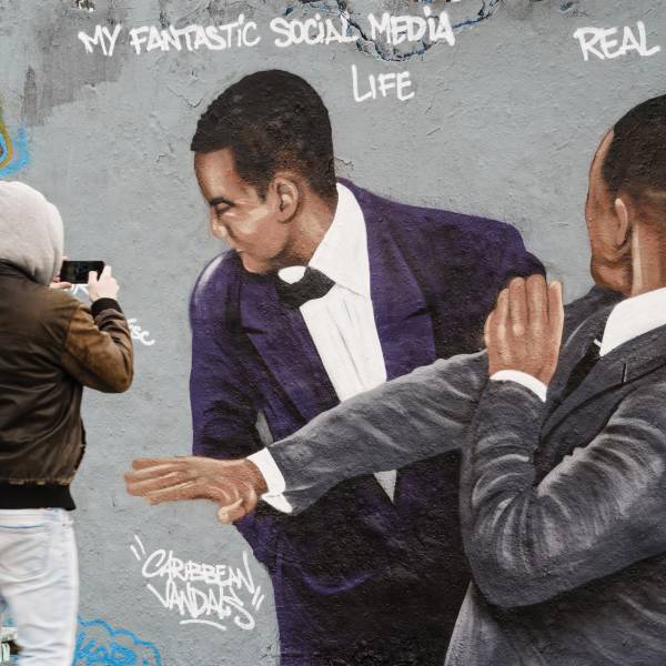 La agreción de Will Smith a Chris Rock aparece retratada en un mural en Berlín, Alemania. ( )