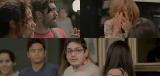 Las imágenes muestran a varios comensales comiendo tranquilamente cuando uno de ellos se transforma en el clásico personaje de terror con gritos y alaridos que no dejan a nadie indiferente.