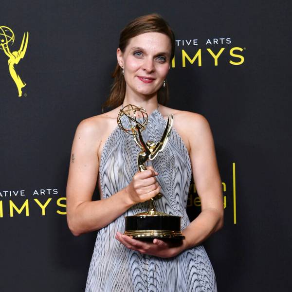 La compositora Hildur Guðnadóttir posa tras ganar un Emmy por su trabajo para la serie limitada