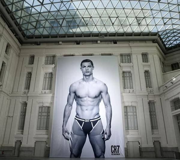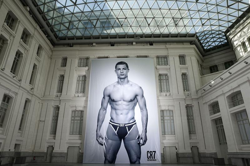 Una poderosa imagen como parte de la decoración propuesta por la empresa danesa JBS Textile, en la que el portugués luce un nuevo modelo de su propia colección CR7 que, según figura en la web de la marca, ronda los 25 euros.
