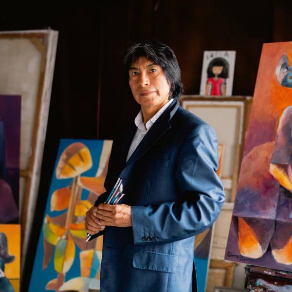 Olmedo Quimbita, conocido por su técnica y estilo distintivos, trae a Cuenca una colección de 25 obras recientes y emblemáticas. Estas piezas, de mediano y gran formato, están realizadas en óleo y acrílico, y retratan escenas cotidianas como la vida en familia, la maternidad, la infancia y la naturaleza en interacción con el ser humano.