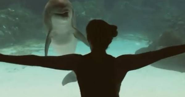 Un video en el que un delfín parece deleitarse por las acrobacias de una artista de circo se ha popularizado recientemente en YouTube.