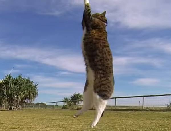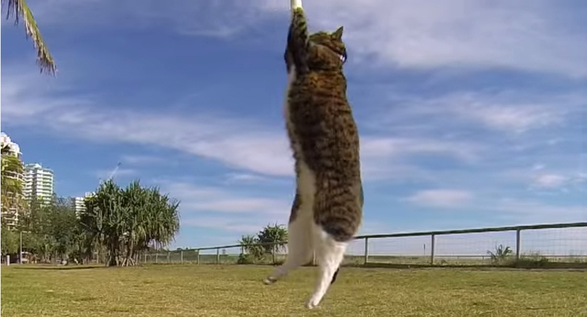 El simpático felino demuestra una vez más sus habilidades extremas, esta vez con increíbles saltos.