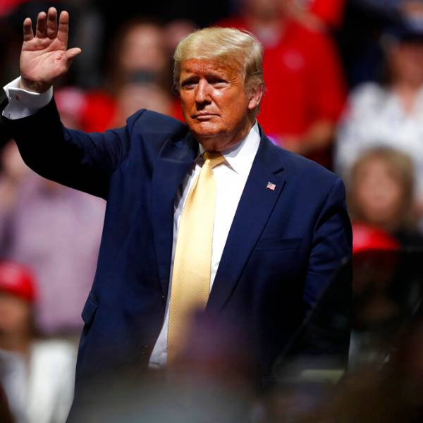 El presidente Donald Trump saluda en un mitin de campaña. Foto: AP Foto/David Zalubowski