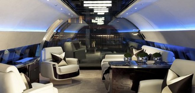 Pueden escoger instalar pantallas de videos que salen del techo de la aeronave, cajas de cigarros, bares, sistemas de sonido, espacio para un dormitorio y tapizado.