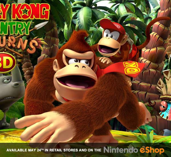'Donkey Kong Country Returns 3D' supone la vuelta del gorila más conocido del mundo de los videojuegos. Este título para Nintendo 3DS, lanzado esta semana, es un 'remake' con algunas novedades del juego para Wii -uno de los mejores en la plataforma- que apareció en 2010 y que suponía una vuelta a los juegos clásicos de los años 90 en Super Nintendo.
