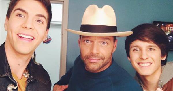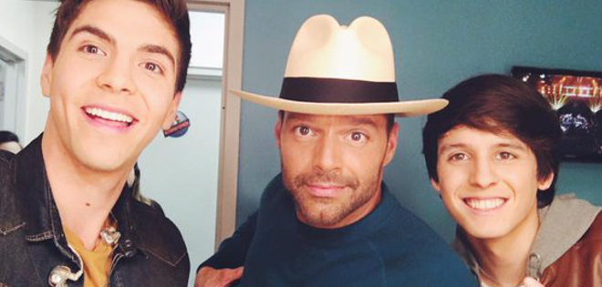 Johann Vera y Christopher Vélez posan junto a Ricky Martin, a quien obsequiaron un sombrero de paja toquilla. Foto: Kathryn Peñarreta