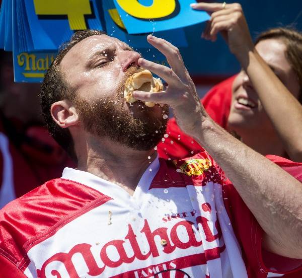 Joey Chestnut, de 32 años, logró este lunes 4 de julio de 2016 una nueva victoria en la tradicional competencia que organiza la firma Nathan's al devorar 70 perros calientes en 10 minutos.