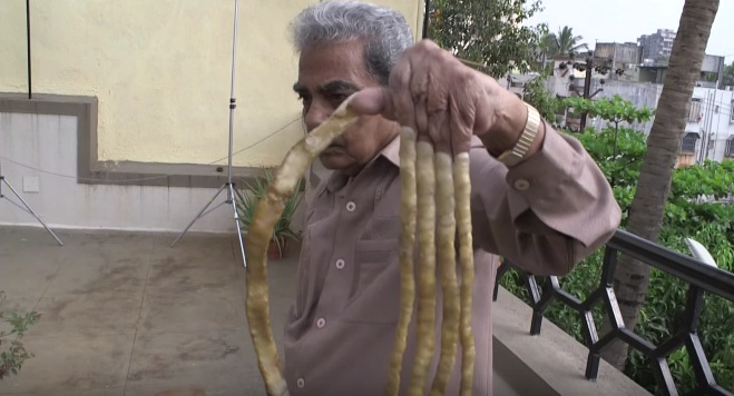 Shridar Chillal es un hombre que lleva desde 1952 sin cortarse las uñas de la mano izquierda por algo que le ocurrió cuando no era más que un niño.