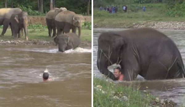 Según el portal del diario peruano El Comercio, el material fue compartido por el canal oficial de “Save Elephant Foundation”, entidad dedicada a la protección de la variedad asiática de estos enormes mamíferos, y muestra a un elefante tratando de rescatar a un hombre que se encontraba en medio de un río.