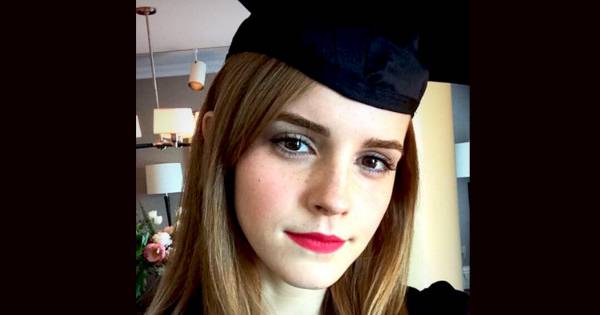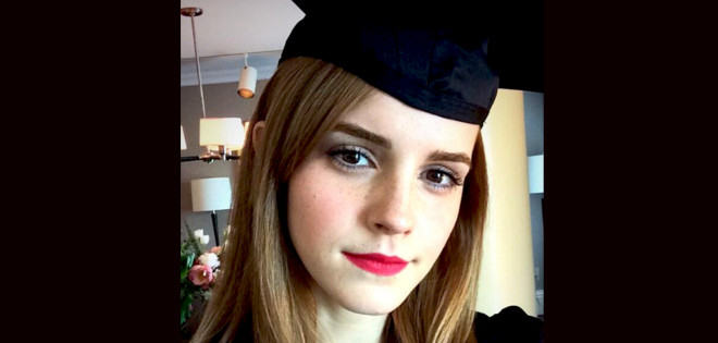 A través de Twitter, Emma subió una imagen antes de ir a la graduación en la que se le ve con la toga y el birrete que lució para recibir el título. Ella escribió: ''Estoy muy emocionada por esto''.