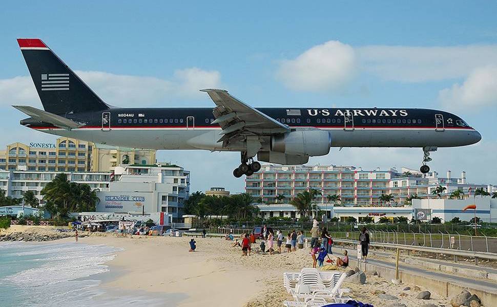 5) El aeropuerto Princess Juliana, está construido en una de las playas más visitadas; con una espectacular vista del Caribe, los aviones que despegan o aterrizan pasan a sólo 25 metros del suelo. Ubicado en la isla Saint Marteen, este aeropuerto pertenece a los Países Bajos.