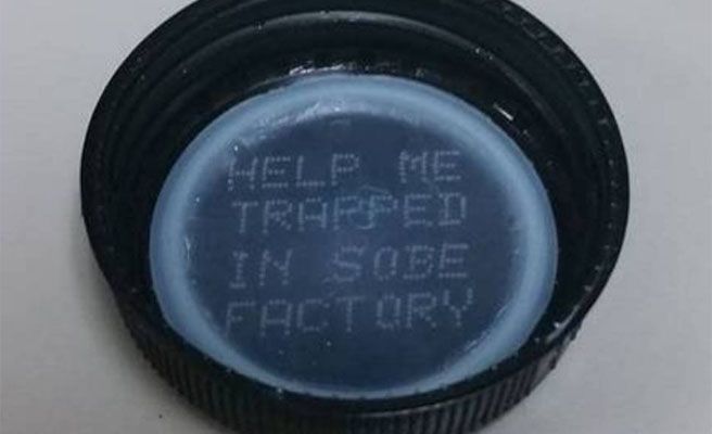Un mensaje encontrado en la tapa de una botella de SoBe, una marca propiedad de PepsiCo, ha desatado la alarma en las redes sociales. ¿Por qué? Su contenido era un tanto tétrico: "help me, trapped in sobe factory" ("ayuda, estoy atrapado en una fábrica"), aparecía grabado justo en la parte interior de la tapa.