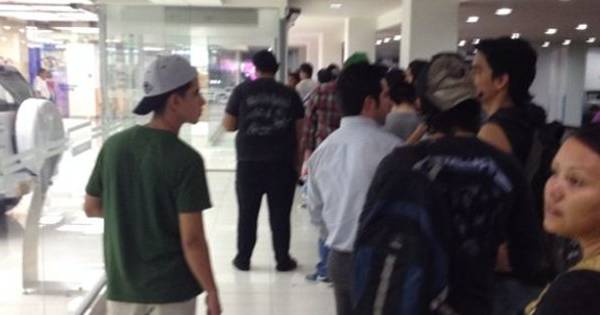 En el centro comercial San Marino de Guayaquil, la fila va hasta el parqueadero. Foto: @hugoxlopez.