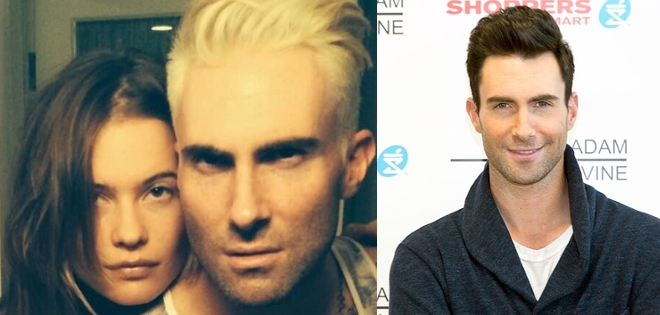 El popular juez del programa de televisión, The Voice, es un un ferviente usuario de Twitter, por donde comparte aspectos cotidianos de su vida, pero el día de ayer sorprendió a todos al subir una foto en compañía de su novia, Behati Prinsloo, en donde mostró un radical cambio de look, pues cambió su castaña cabellera a un rubio platino, lo cual causó impacto en las redes sociales y sus fans.