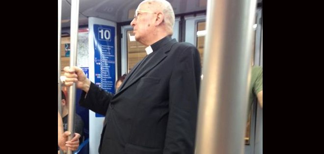 El joven que viajaba en un metro de la ciudad de Madrid le preguntó al sacerdote si deseaba sentarse, a lo que él le respondió: "Hijo mío, no, porque aunque haya bajado mucha gente, volverán a subir otros tantos, y mientras haya gente que necesite un sitio, yo voy de pie".