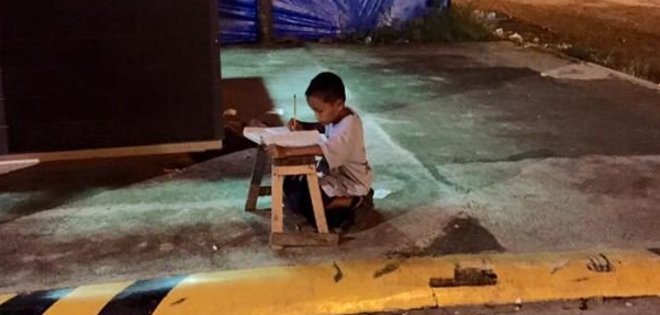 El ejemplo de perseverancia fue inicialmente subido a Facebook por Joyce Gilos Torrefranca, quien explicó que el niño estudiaba en una calle de Cebú, Filipinas, porque no tenía acceso a electricidad en casa.