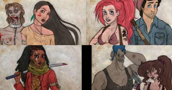 Rapunzel, Mulan, Anna y Elsa de Frozen, John Smith y Pocahontas, o Mérida de Brave y Ariel, y Eric de 'La sirenita' son algunos de los personajes que lucen sucios y portan armas para sobrevivir a los zombies.