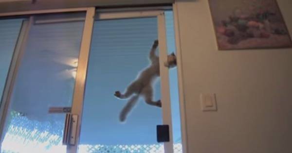 El gato que escala puertas de vidrio al estilo "Spiderman"