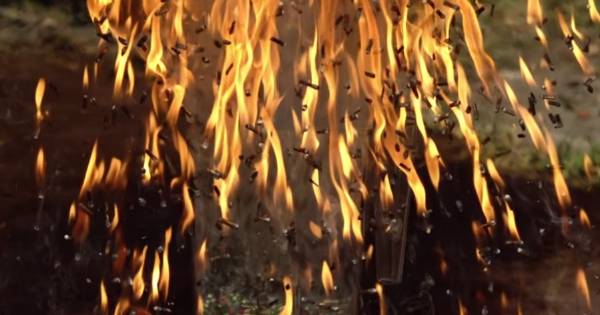 Los jóvenes, amantes de hacer experimentos poco habituales, pusieron 6 mil cabezas de fósforos en un recipiente y arrojaron un cerillo encendido a una distancia prudencial. De inmediato, el fuego consumió los fósforos y el recipiente por completo.