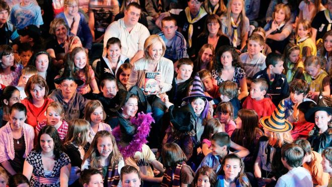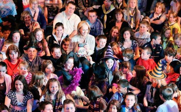 Joanne Kathleen Rowling junto a varios de sus seguidores.