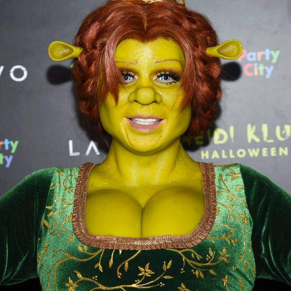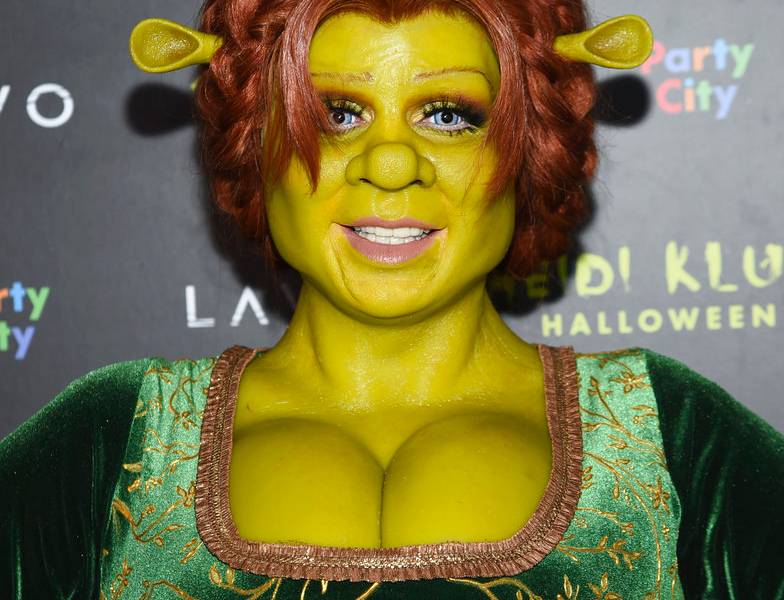 La supermodelo y presentadora de TV se vistió como la princesa Fiona de "Shrek" el miércoles para su 19na fiesta anual de Noche de Brujas.