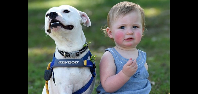 AUSTRALIA.- Ella Peggie es una niña de un año que nació sin su brazo izquierdo y Snowvy es un perro que no posee su pata izquierda. Foto: Tomado de 'Fan Page' de Ella y Snowvy.