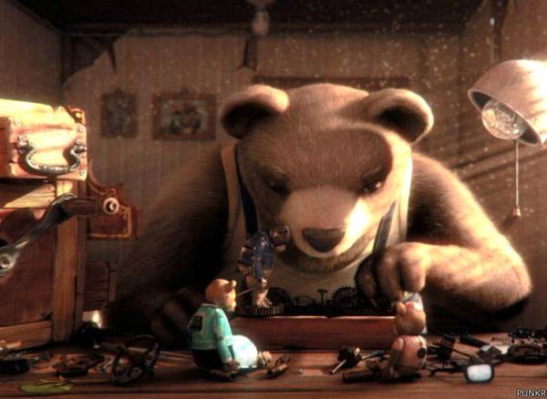 La historia, entonces: hay un oso triste y solitario, que construye un mágico diorama con sus propias manos como un intento de recordar la vida feliz de antaño, con su esposa y su hijo, antes de que un circo lo arrancara de su hogar y lo hiciera trabajar por la fuerza y pasar una vida miserable.