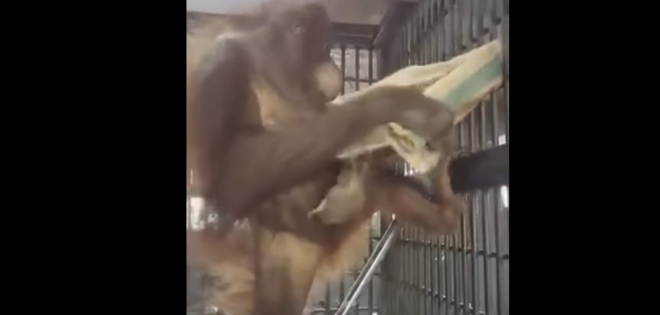 Tal parece que gracias a la enseñanza de sus adiestradores, Nemo aprendió a armar una resistente y confortable hamaca en solo cuatro minutos, según quedó registrado en el video subido a YouTube.