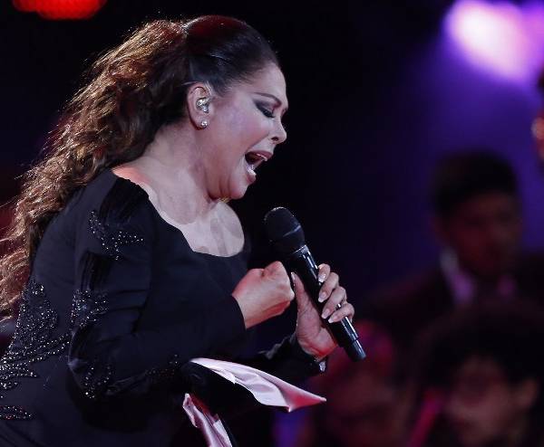 Acompañada por una orquesta sinfónica de 90 músicos, 'la Reina de La Copla' desplegó su poderosa voz para realizar un sentido homenaje a su "compadre", el fallecido cantante Juan Gabriel, de quien interpretó algunos de sus mayores éxitos como 'Se me olvidó otra vez' o 'Te lo pido por favor'.