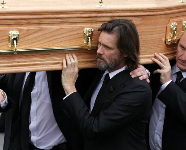 Al finalizar el funeral se pudo ver cuando Carrey cargó por algunos momentos el ataúd que contenía los restos de su exnovia cuando eran conducidos fuera del lugar donde se realizó la ceremonia.