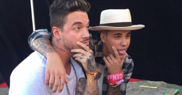Otro de los invitados fue el colombiano J Balvin, quien no quiso desaprovechar la oportunidad de conocer al artista canadiense y mostrarle unas cuantas frases colombianas.