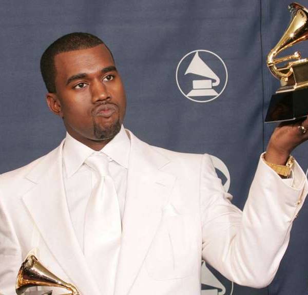 Kanye West, rapero estadounidense en una alfombra roja de Los Grammys.
